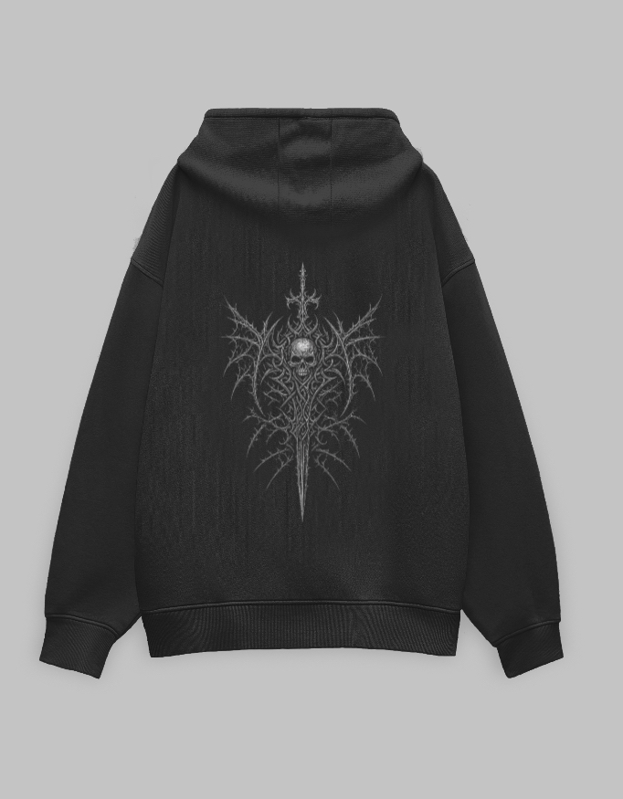 - Oversized Fit Hoodie with bold gothic-inspired back print